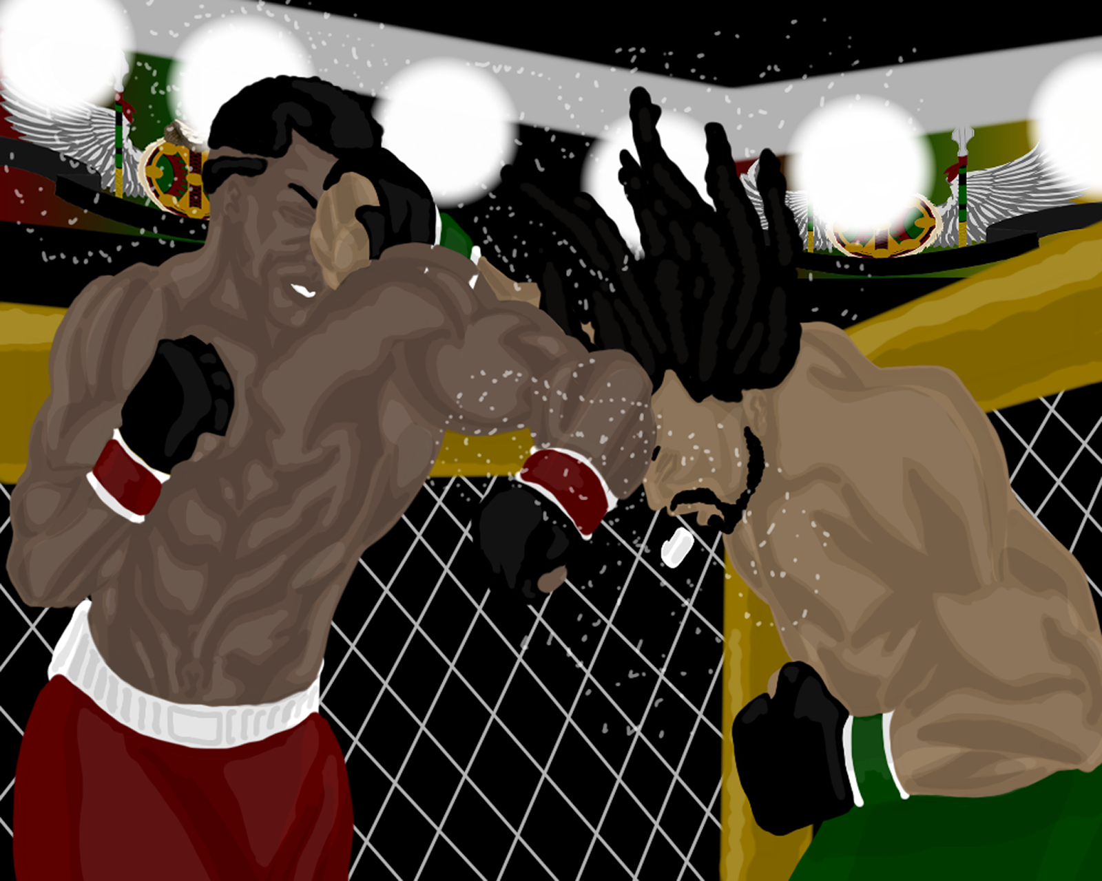 And so, I put away the various public domain IPs I had been working on, and started sketching something based off of something I’m actually fond of, boxing. I found a picture of David Haye fighting an opponent (don’t know his name), and started sketching something based off that. Next thing I knew, I was about seven layers deep into this picture, and decided to go ahead and finish it.
